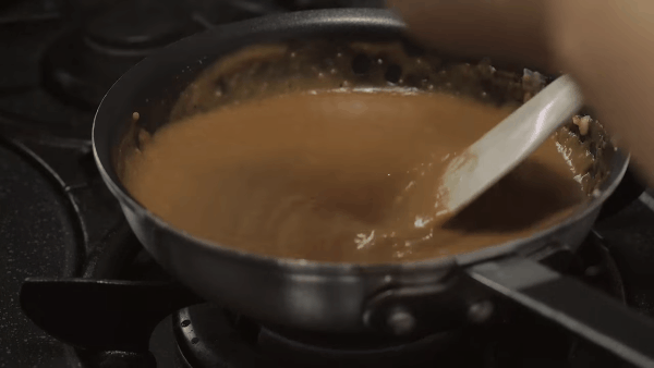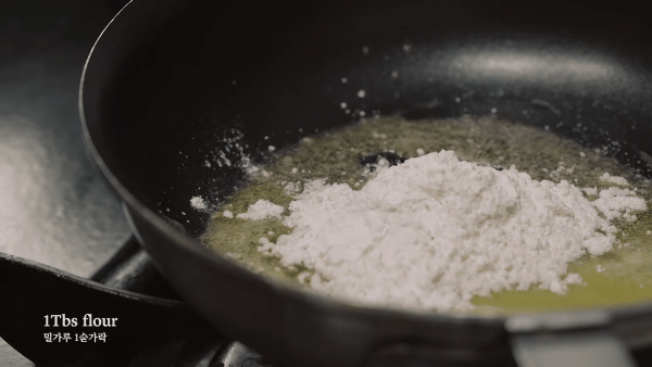 Cách làm nước sốt: Cho bơ vào chảo đun nóng chảy thì cho phần bột mì vào, khuấy đều.