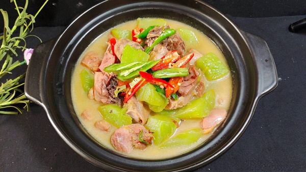 Thành phẩm món đùi gà hầm rau diếp ngồng