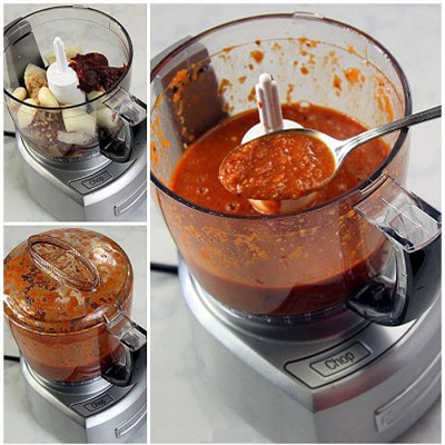 ![]() | ![]() Trộn đều phần sốt ướp trong một bát nhỏ hoặc máy xay. |