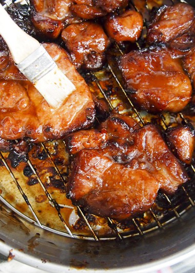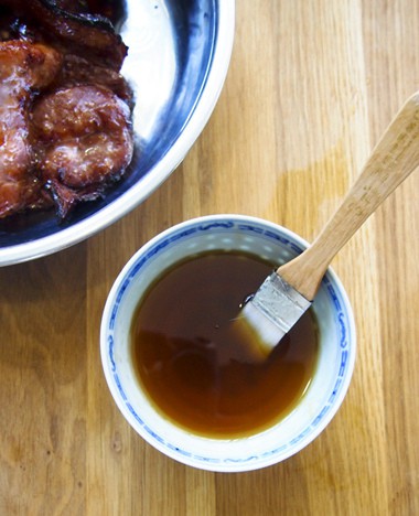 Lấy thịt ra phết mạch nha lên khắp miếng thịt. Đem nướng tiếp ở 230 độ C tròng vòng 2 phút rồi lấy thịt ra và phết tiếp lớp mạch nha.
