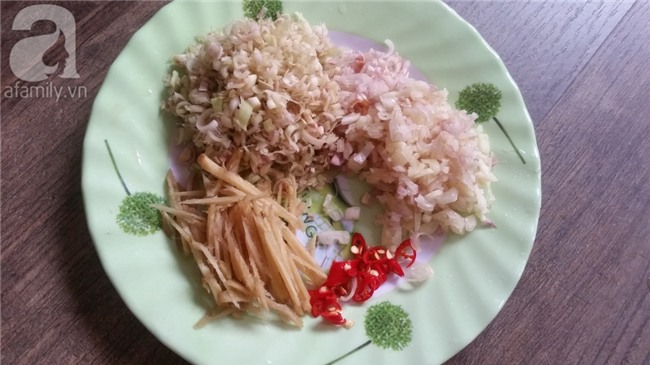 Sả, hành, tỏi, ớt băm nhỏ,gừng thái chỉ. Để các nguyên liệu riêng.