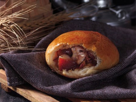 Bánh mì thịt kho với phần nhân thịt thơm thơm mùi quế, nước thịt thấm quyện vào lớp bánh mặn mặn ngòn ngọt đậm đà thích hợp để dùng bất cứ khi nào trong ngày.