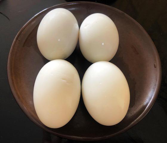 - Trứng vịt rửa sạch, luộc chín, bóc vỏ.
