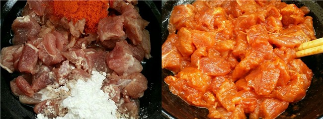 Cho thịt vào âu, thêm gia vị ướp thịt nướng và 1 thìa canh bột ngô cùng 20g nước lọc vào trộn đều. Bọc kín âu thịt cho vào tủ lạnh khoảng 2 giờ hoặc qua đêm cho thịt ngấm gia vị.