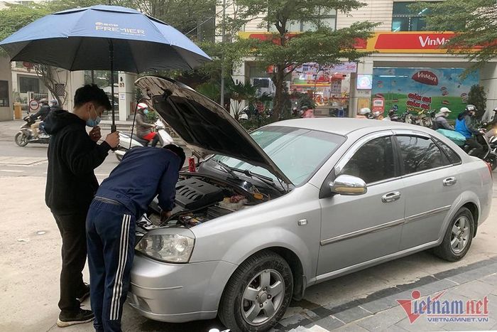 Biết khách đang rất cần, anh Tài tạm đóng cửa gara và lấy xe ô tô lên đường. Sau khoảng 1 giờ đồng hồ "vật lộn" với chiếc xe cũ, anh nhận định van hằng nhiệt đã bị hỏng, nước làm mát không thể vào bên trong bộ tản nhiệt khiến nước liên tục sôi và bốc khói.