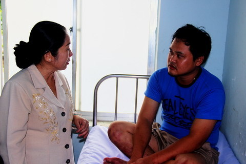 Bà Võ Thị Dung, chủ tịch UBMTTQ TP thăm hỏi nạn nhân Hoàng Anh Tuấn |