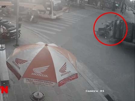 Sau khi bị chiếc ô tô tải tông trực diện, người đàn ông lái xích lô thoát chết hy hữu, chỉ bị thương nhẹ ở mặt vẫn bình thản đứng dâỵ
