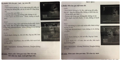 Kết quả siêu âm trước và sau khi điều trị bùn túi mật của bệnh nhân L.M.T
