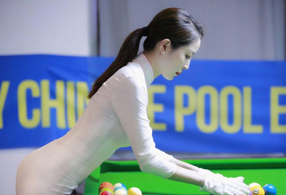 Giữa một khung cảnh với bàn bida to đùng và những trái bida đủ màu, thực sự nữ trọng tài này đã chiếm trọn spotlight. Dù chỉ nghiêm mặt đứng bên và quan sát các trận đấu nhưng nhan sắc xinh đẹp, gương mặt khả ái cùng vẻ duyên dáng trong bộ sườn xám trắng vẫn đủ khiến cô trở thành tâm điểm.