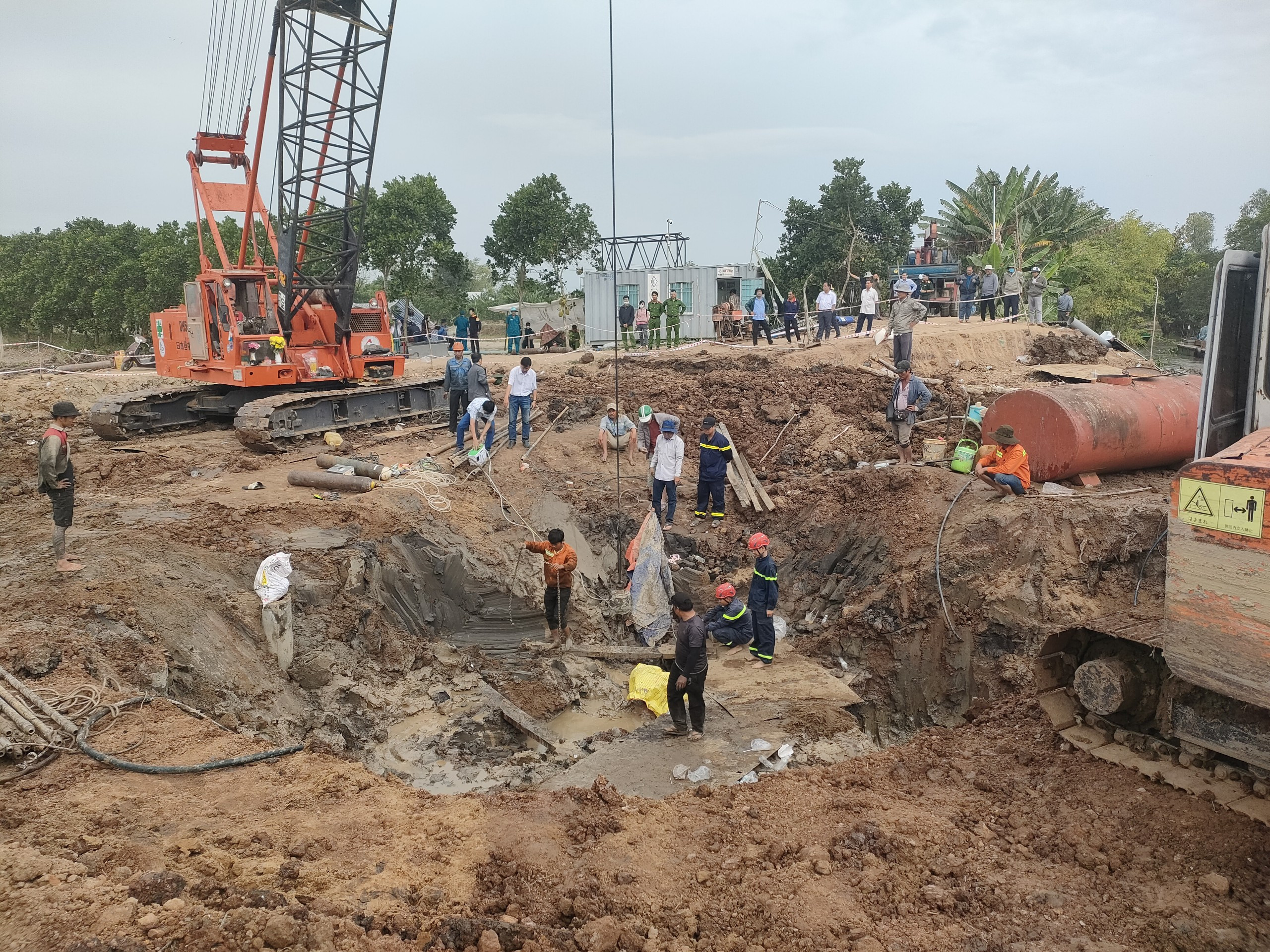 Tại hiện trường, lực lượng cứu hộ đã triển khai theo phương pháp khoan guồng xoắn, sau đó kết hợp cùng phương pháp khoan xoáy nước áp lực lớn. Tuy nhiên, càng xuống sâu, đụng phải nền địa chất rắn chắc, lớp đất sét liên kết chặt nên phương án này gặp khó khăn.