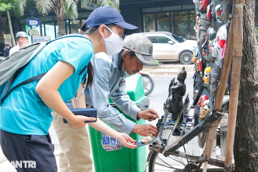 Hơn 30 năm nay, ông Bảy cùng chiếc xe đạp chở đầy những chiếc mặt nạ rong ruổi khắp TPHCM, từ quận Gò Vấp đến các đường ở khu vực quận 1, quận 3. Ông thích đạp xe để những người đi đường có thể chầm chậm ngắm tác phẩm của mình.