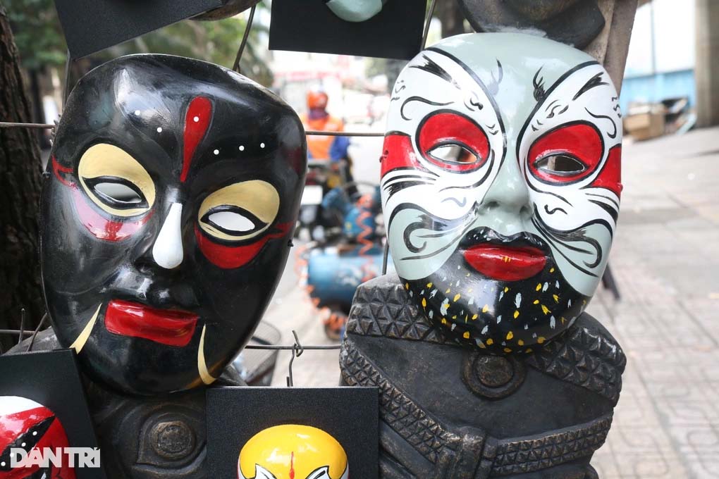 "Gánh hát" của ông Bảy có hơn 40 chiếc mặt nạ với 3 kích cỡ khác nhau. Chiếc nhỏ nhất có giá 185.000 đồng/cái, cỡ trung có giá 480.000 đồng/cái và lớn nhất là 520.000 đồng/cái. Trung bình, mỗi ngày ông có thể bán được 4-5 cái.