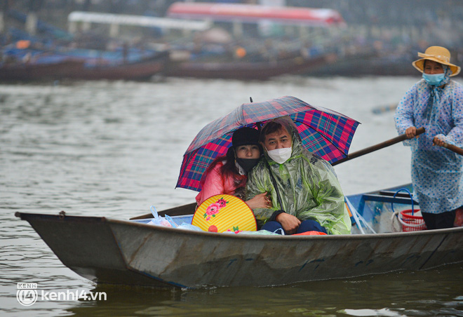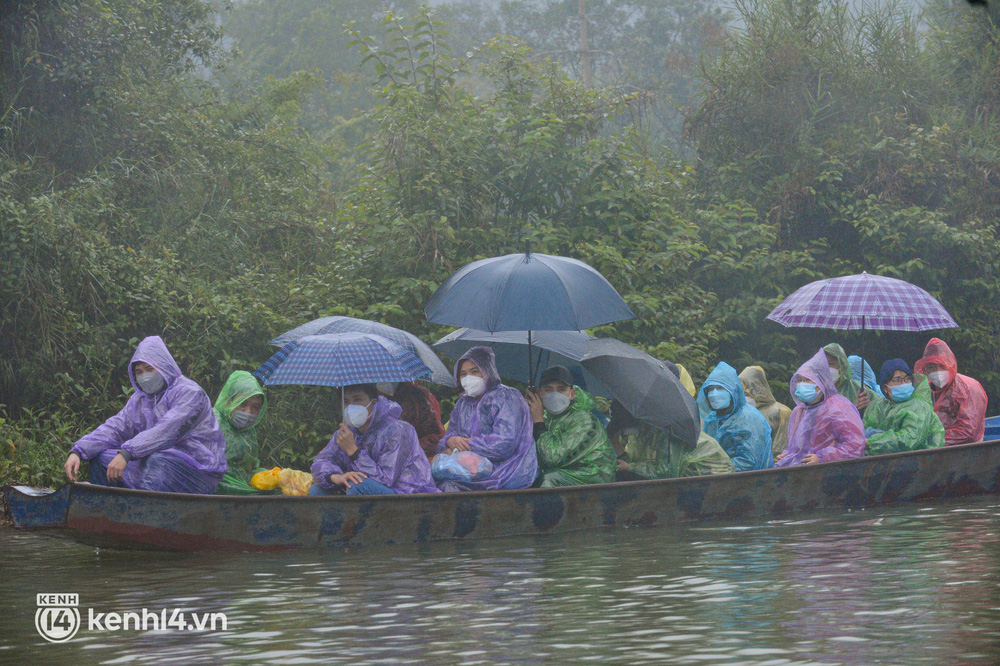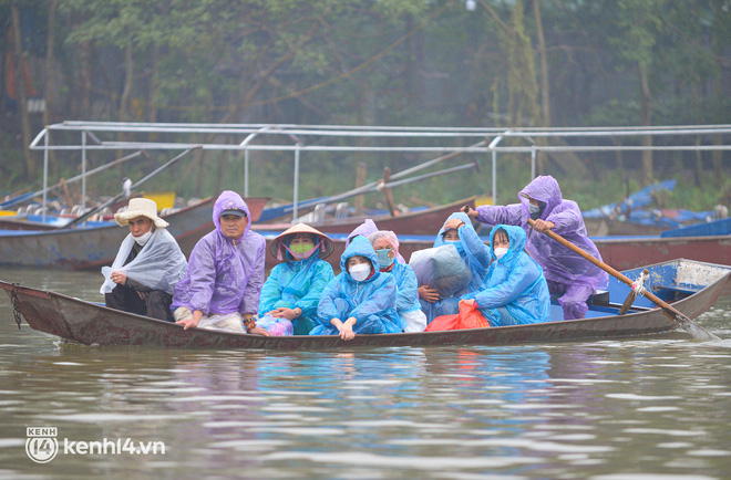Hàng nghìn chiếc thuyền đã được hạ thủy sau gần một năm không hoạt động vì Covid-19. Người dân vui mừng đứng đón khách cách chùa Hương vài km