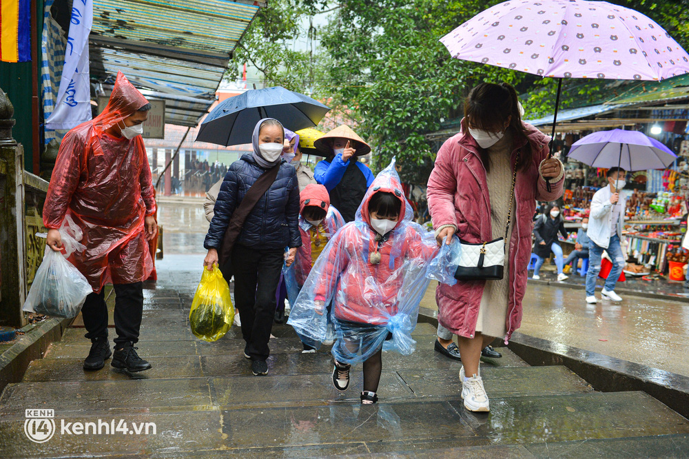 Thời tiết lạnh buốt kèm mưa khiến nhiều du khách mặc áo mưa vẫn cảm thấy khó chịu