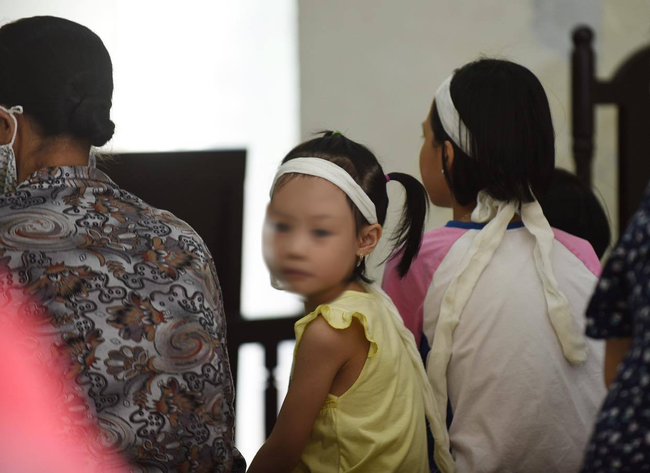 Còn con bé út - do còn quá nhỏ, em vẫn mải mê nô đùa dưới khán phòng mà chẳng thể định hình được, rằng mẹ em đã ra đi mãi mãi trong 1 vụ án mà lẽ ra mẹ em là người vô can. Nhìn cảnh 3 đứa nhỏ còn rất bé nhưng đầu đã đội tang mẹ, cuộc sống, tương lai phía trước rồi đây sẽ ra sao khiến nhiều người xót xa thay!
