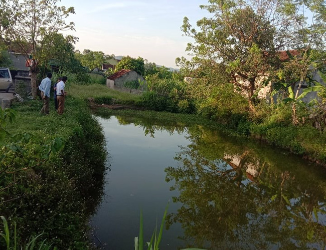 Ao cá nơi phát hiện thi thể hai em nhỏ.