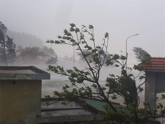 Tại Hà Tĩnh, bãi biển Thiên Cầm bão vẫn đang gào thét mịt mù, cây cối nghiêng ngả, nhiều ngôi nhà bị tốc mái.