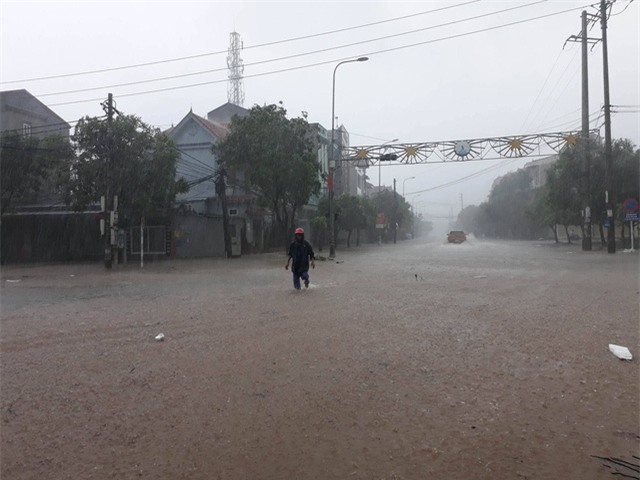 Tại Quảng Bình, mưa trắng trời, gió giật dữ dội. Cửa Lò, Nghệ An cũng mù mịt trong mưa lớn, gió giật giữ dội, triều cường dâng cao, nước biển tràn vào sâu trong đất liền gần 1km.