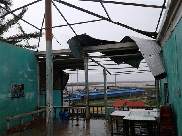 11h21', tại Hà Tĩnh, bão vừa cuốn phăng một ki ốt tại thị trấn Thiên Cầm. "Lâu lắm rồi mới thấy cơn bão mạnh như thế này" , đó là lời anh Tuấn, 45 năm sống ở mảnh đất Thiên Cầm này.