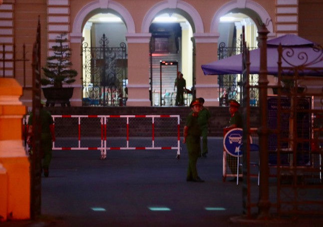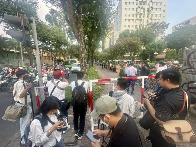 Từ sáng sớm, lực đảm bảo an ninh đã tổ chức chặn đường, kiểm soát ra vào toà án. Phóng viên báo chí được yêu cầu đứng cách xa cổng toà 20m.