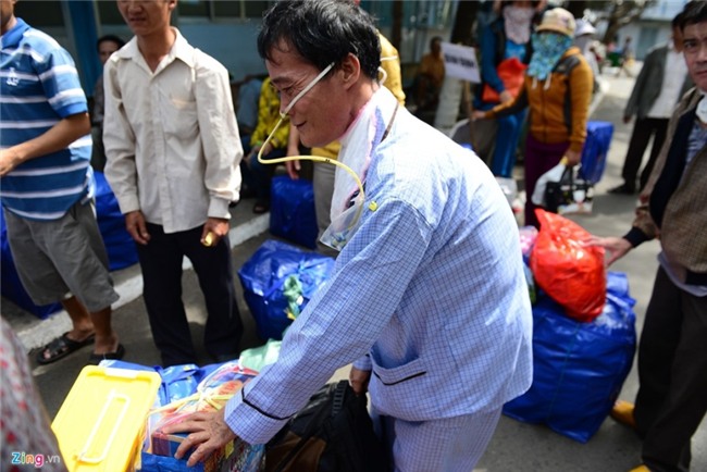 | Nhiều người mang mang theo đồ đạc nặng trĩu cùng các phần quà được tặng về quê sau thời gian dài chiến đấu với bệnh tật. |