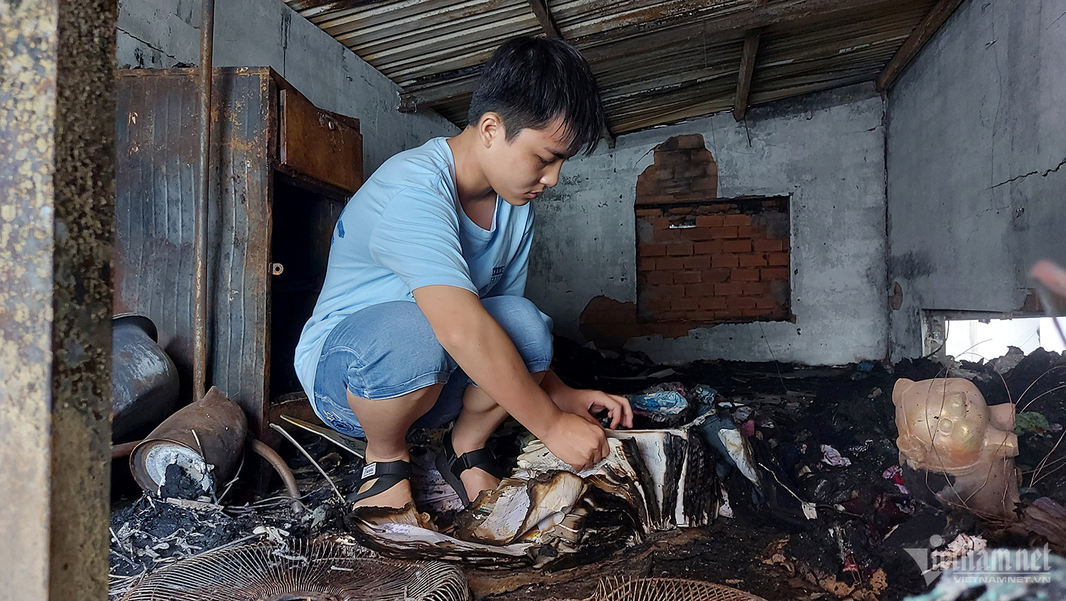 Tranh thủ ngày nghỉ cuối tuần, cậu học trò Nguyễn Tiến Lộc (15 tuổi, ngụ phường Cái Khế, quận Ninh Kiều, TP Cần Thơ) trở về ngôi nhà thân thương vừa bị “bà hoả” thiêu rụi. Men theo cầu thang lên gác lửng, bước đi thăm dò, Lộc tìm tới bàn học cũ.