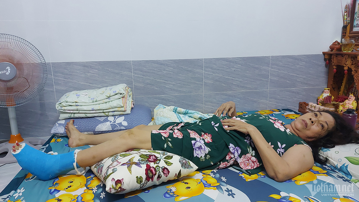 Mẹ chị Linh chấn thương cột sống, gãy chân, hiện phải nằm một chỗ.