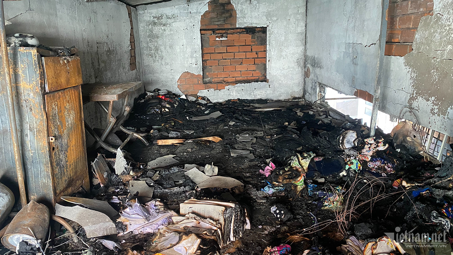 Đồ dùng học tập, quần áo của Lộc gần như bị ngọn lửa lớn thiêu rụi.