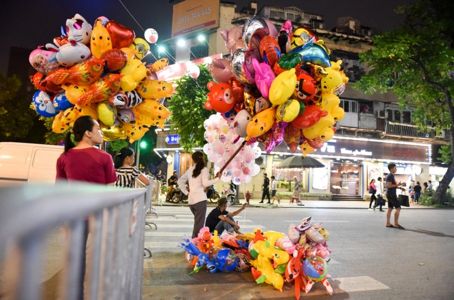 Không nên đứng gần những chùm bóng bay lớn bán rong ngoài đường, bởi lẽ tiềm ẩn nguy cơ tai nạn rất lớn từ những chùm bóng này (Ảnh minh họa).