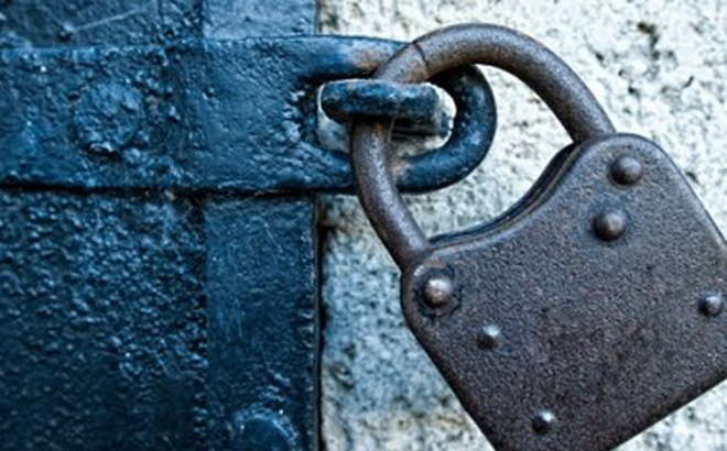 Người dân hỗ trợ phá ổ khóa do kẻ xấu khóa từ bên ngoài cửa kéo để "giải thoát" người bên trong. Ảnh: Người dân cung cấp