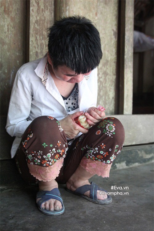 Chúng tôi có thắc mắc thì bà nói: “Tôi không phải thấy các anh ở đây mà giả nghèo, giả khổ. Ngày nào cũng vậy thôi, có gì tôi cho các con ăn nấy. Mà mấy con cá mắm kia cũng là của người làng mang cho. Tôi cũng không muốn cho chúng nó ăn, vì ăn mặn uống nước nhiều, lại đái dầm thì khổ tôi giặt đồ lắm”.