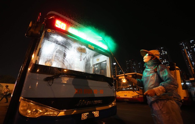 Đêm 5/8, khu vực gia đình bệnh nhân đang sinh sống, toàn bộ khu vực văn phòng, xưởng, sân bãi và 162 xe buýt của 15 tuyến và nhánh tuyến do Xí nghiệp xe buýt 10/10 quản lý được phun khử khuẩn.