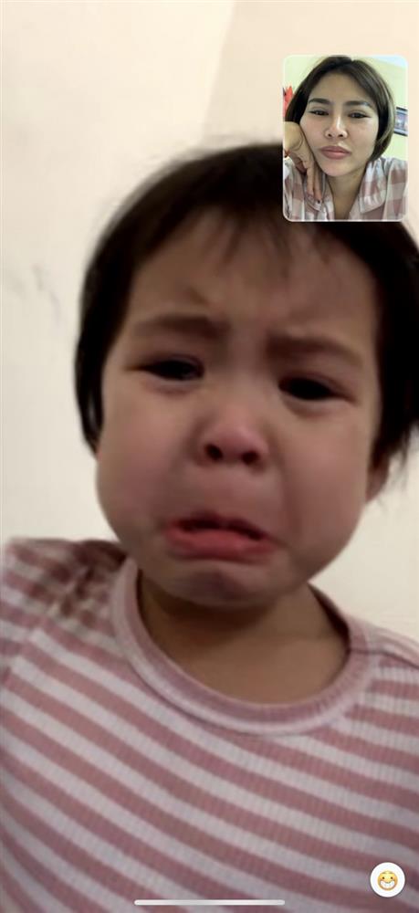 Hình ảnh em bé 2 tuổi với gương mặt mếu máo, đang gọi điện cho mẹ - nữ y tá, đồng thời là F1 đang chiến đấu tại tâm dịch của Thị trấn Cẩm Giang, huyện Cẩm Giàng (Hải Dương).