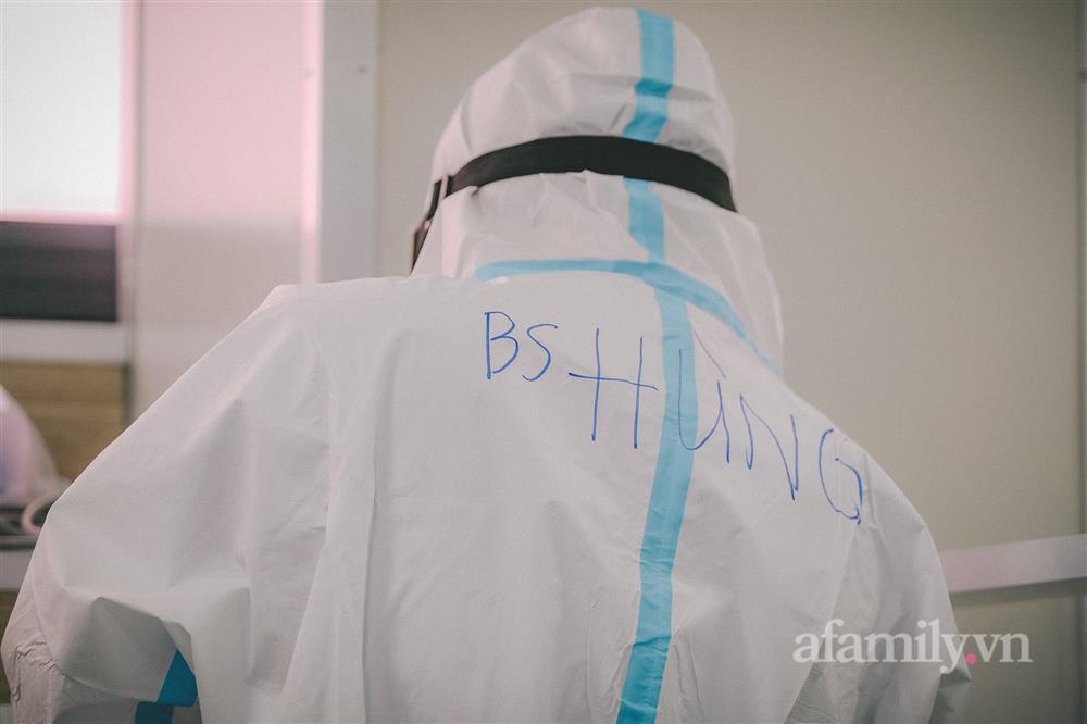 Mỗi lúc tiếng bộ đàm từ phòng theo dõi trung tâm vang lên, là đội ngũ y, bác sĩ lập tức đi đến kiểm tra, can thiệp. Trong ảnh là bác sĩ Vũ Đình Hùng, người có 2 tháng từng tham gia chống dịch tại “điểm nóng” tỉnh Bình Dương.