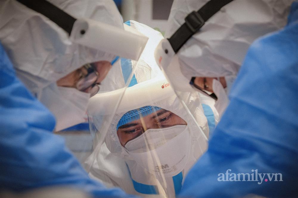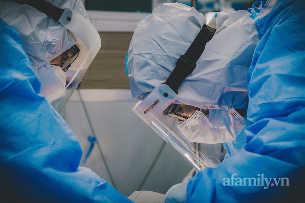Tư thế cúi gập, tập trung cao độ, kính mờ hơi, rất mỏi và nóng do không được dùng điều hòa trong buồng bệnh là những gì các y, bác sĩ phải đối mặt mỗi khi có bệnh nhân trở nặng, cần can thiệp bằng máy móc.