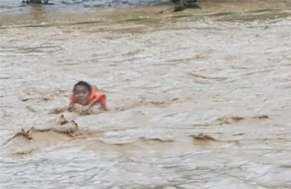 Anh Yđêl Sơn, cán bộ y tế đã liều mình bơi qua dòng lũ sâu cứu người.