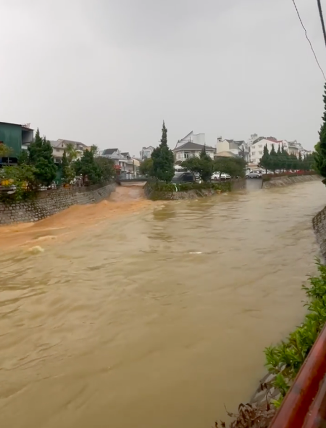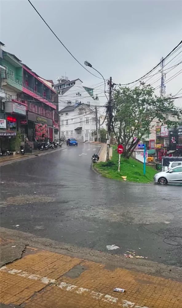 Clip viral nhất ghi lại dòng nước cuốn trôi chảy cuồn cuộn ở Đà Lạt sau cơn mưa trưa 14/4 (Nguồn: Amazing Đà Lạt)