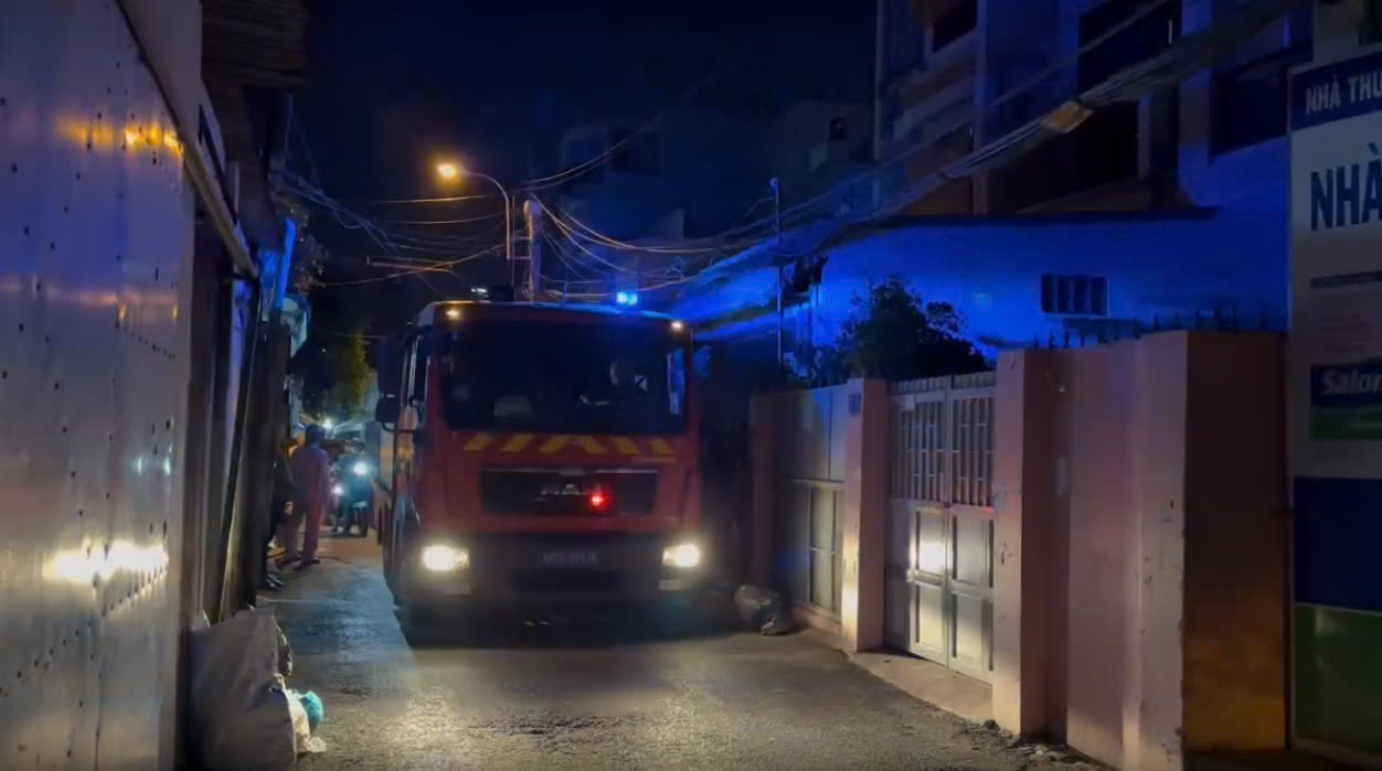 Nhận thông tin, Cảnh sát PCCC và CNCH Công an quận Gò Vấp điều xe đến hiện trường ứng cứu.