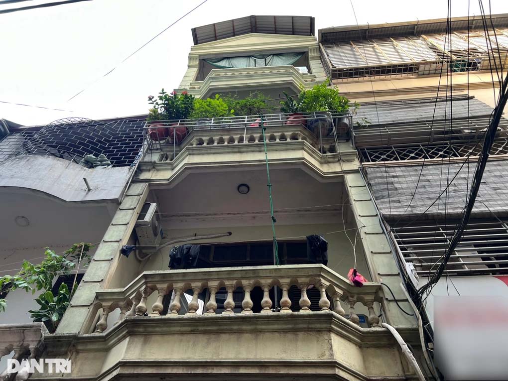 Căn nhà 4 tầng trong ngõ 171 Nguyễn Ngọc Vũ nơi xảy ra hỏa hoạn sáng 29/8 (Ảnh: Minh Nhân).