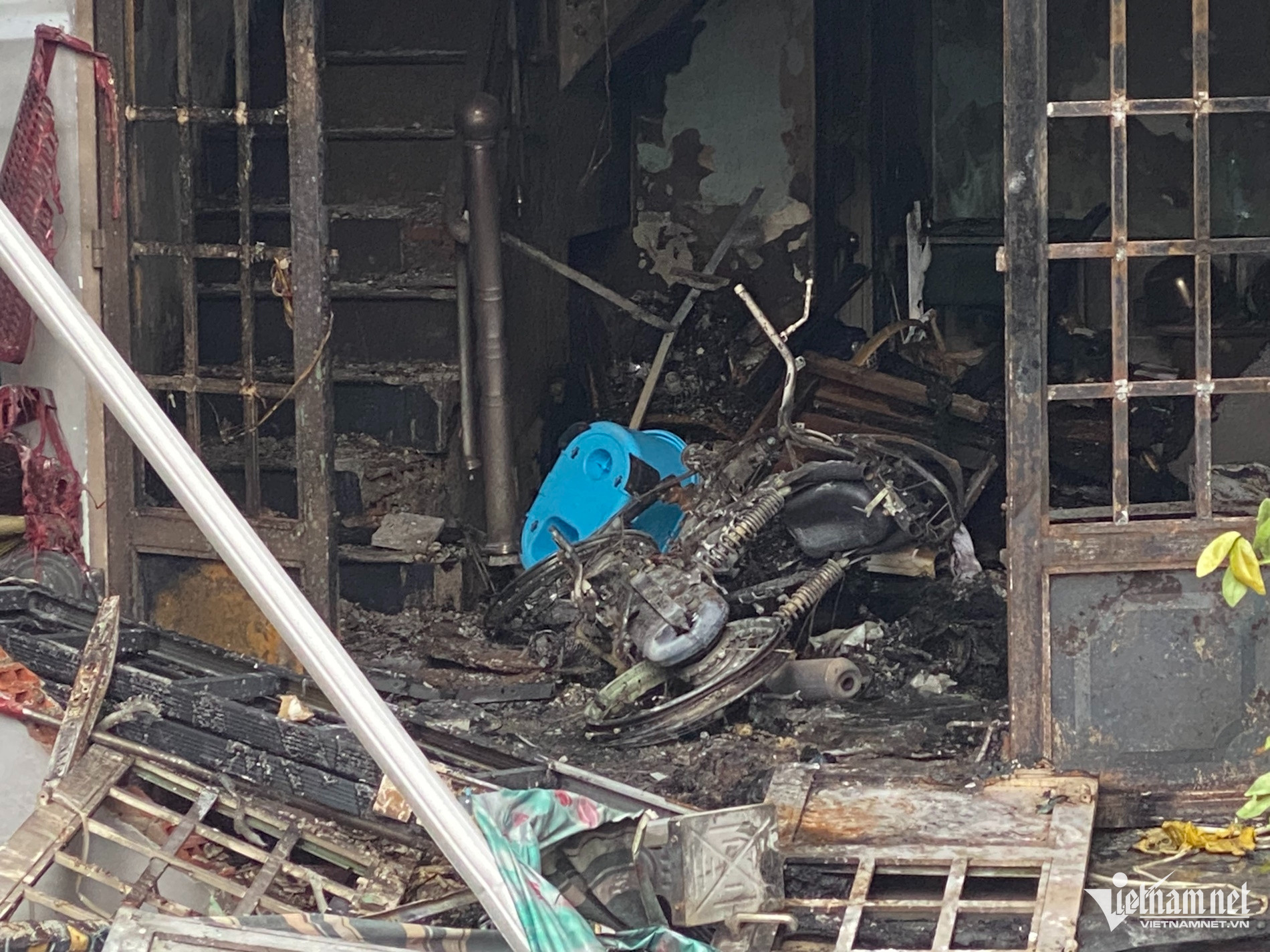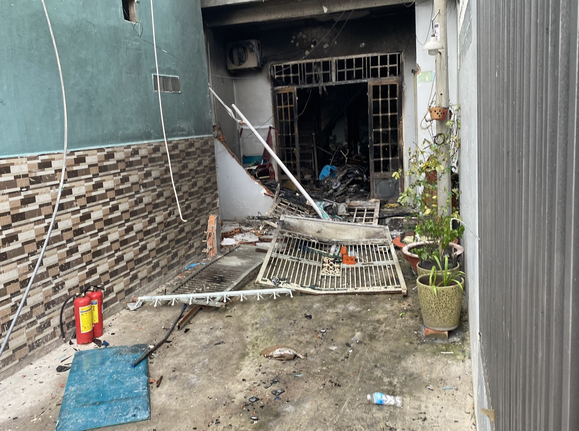 Ghi nhận tại hiện trường, căn nhà xảy ra hoả hoạn có diện tích khoảng 32 m2 với lầu 2 ám khói. Ở tầng 1 nhiều vật dụng ngổn ngang, xe máy cháy chỉ còn trơ khung. Cửa sắt, tường gạch bên ngoài bị đổ sập.