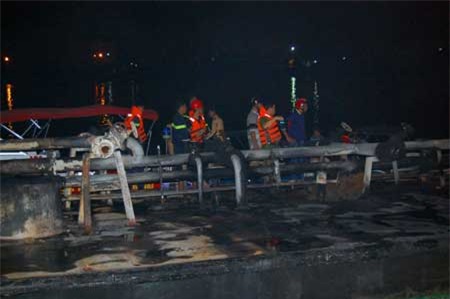Đến khoảng 22h30 cùng ngày, ngọn lửa cơ bản được khống chế. Tuy nhiên chiếc tàu chở dầu đã bị thiêu rụi. Ngoài ra, một con tàu nhỏ bằng gỗ neo sát tàu dầu này cũng bị cháy lan và bị chìm ngay sau đó.