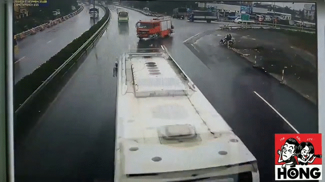 Đoạn clip cho thấy rõ, chiếc xe cứu hộ của lực lượng PCCC có nhá đèn hiệu xin đi ngược chiều trên đoạn nút giao rẽ phải để nhập làn đường sát dải phân cách, khi xe PCCC tăng tốc để băng sang làn đường thì chiếc xe khách loại 54 chỗ chạy tới không phanh kịp nên cả hai đã va chạm trực diện.