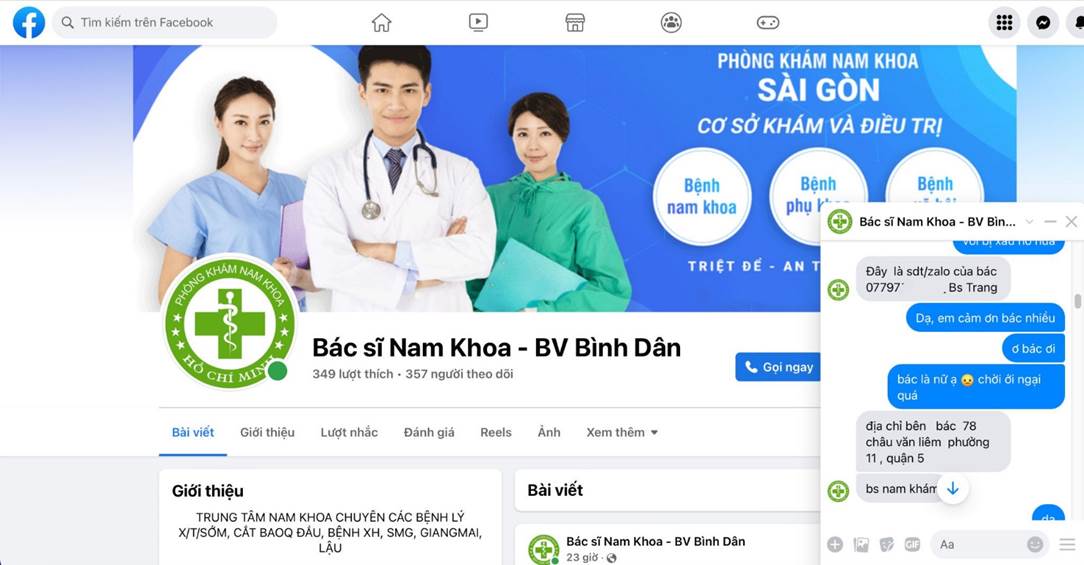 "Em cứ vào trong nói có hẹn với bác sĩ Trang sẽ được dẫn lên", tài khoản này nhắn. Tuy nhiên, anh Nam không đồng ý vì cảm thấy… bất ổn. Để chắc ăn, anh gọi điện đến Bệnh viện Bình Dân và được biết Fanpage kia không phải của Bệnh viện Bình Dân, cũng không phải tài khoản của Khoa Nam học thuộc bệnh viện này.
