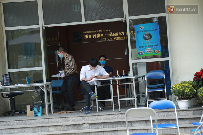 Ghi nhận của chúng tôi vào trưa ngày 3/2, tại văn phòng Đăng ký đất đai Hà Nội, đơn vị này đã tạm dừng hoạt động, tiến hành khai báo y tế và chờ các đơn vị y tế đến phun khử trùng, sát khuẩn.