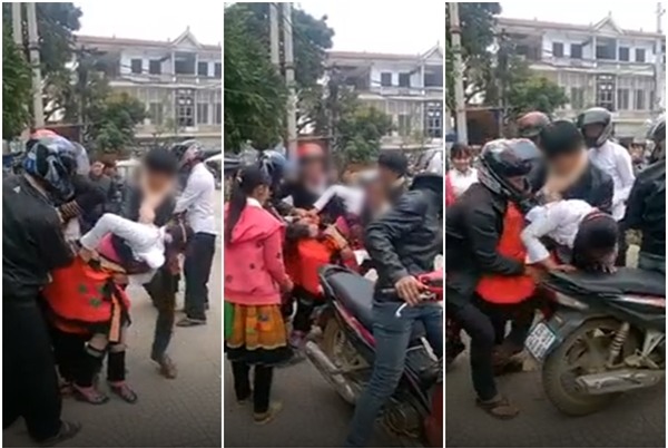 Theo đoạn clip, cô gái trẻ trong trang phục dân tộc đang giãy giụa, kêu la phản đối nhưng nhóm thanh niên khoảng 3, 4 người vẫn giữ chặt tay, ép cô gái lên xe bằng được.