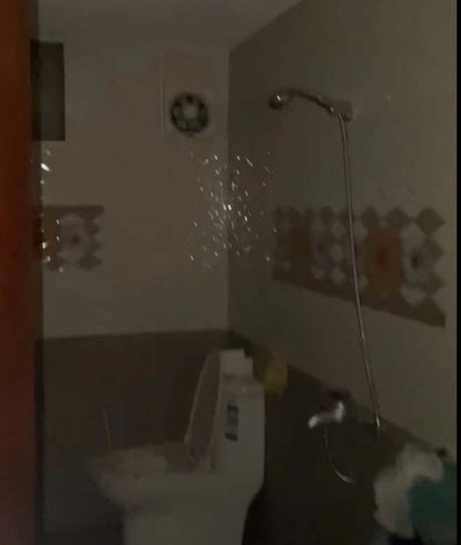 Chiếc camera trong góc nhà vệ sinh bị phát hiện (ảnh nạn nhân chia sẻ)