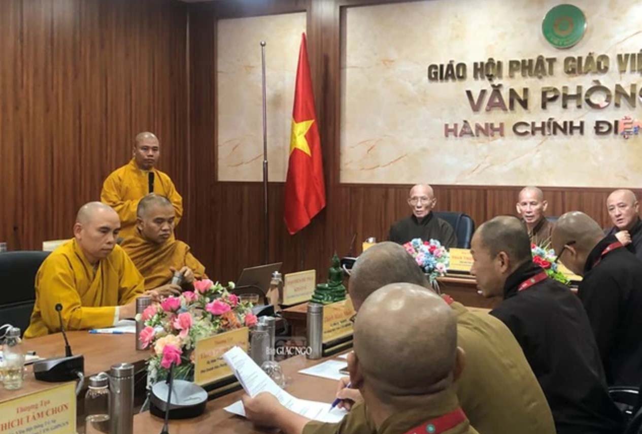 Đại đức Thích Nhuận Đức nhận lỗi và bày tỏ sám hối trong buổi họp ngày 4-6-2024 tại Văn phòng II Trung ương GHPGVN. Ảnh: Giác Ngộ