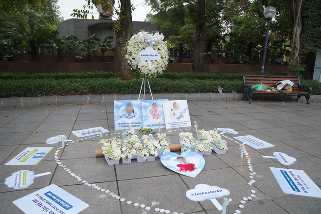 "Chúng mình muốn làm lễ tưởng niệm cho V.A.. Chọn màu xanh và hình ảnh đám mây giống như tên con, mong con luôn là 1 thiên thần xinh đẹp. Không chỉ vậy, chúng mình muốn tiếp thêm sức mạnh cho gia đình bé, lên án hành động tra tấn trẻ em của Thái - Trang. Kẻ ác phải bị đền tội.
