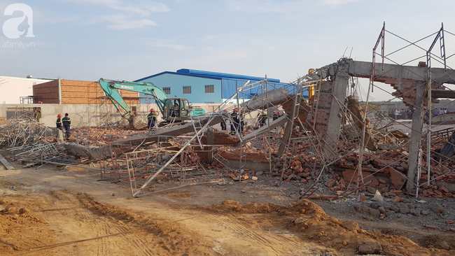 Trước đó như đã thông tin, khoảng 15h cùng ngày khi nhiều công nhân đang làm việc tại công trình nằm trên đường số 8 của khu công nghiệp, bức tường cao 12 mét, dài 100 mét vừa xây khoảng 1 tháng trước bất ngờ đổ sập đè hàng loạt công nhân.