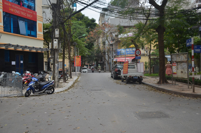 Quang khu phố Trúc Bạch vắng vẻ, ít người qua lại.